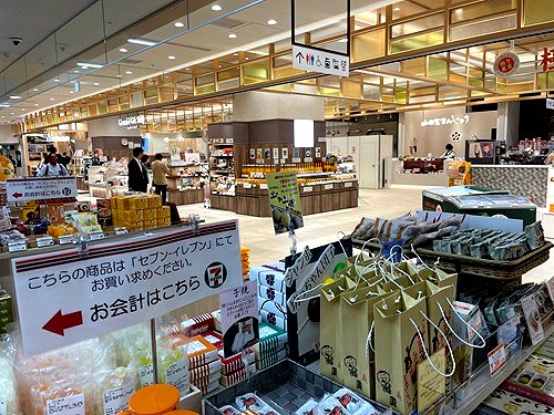 駅舎に入るとお土産売り場などの商店街がある。