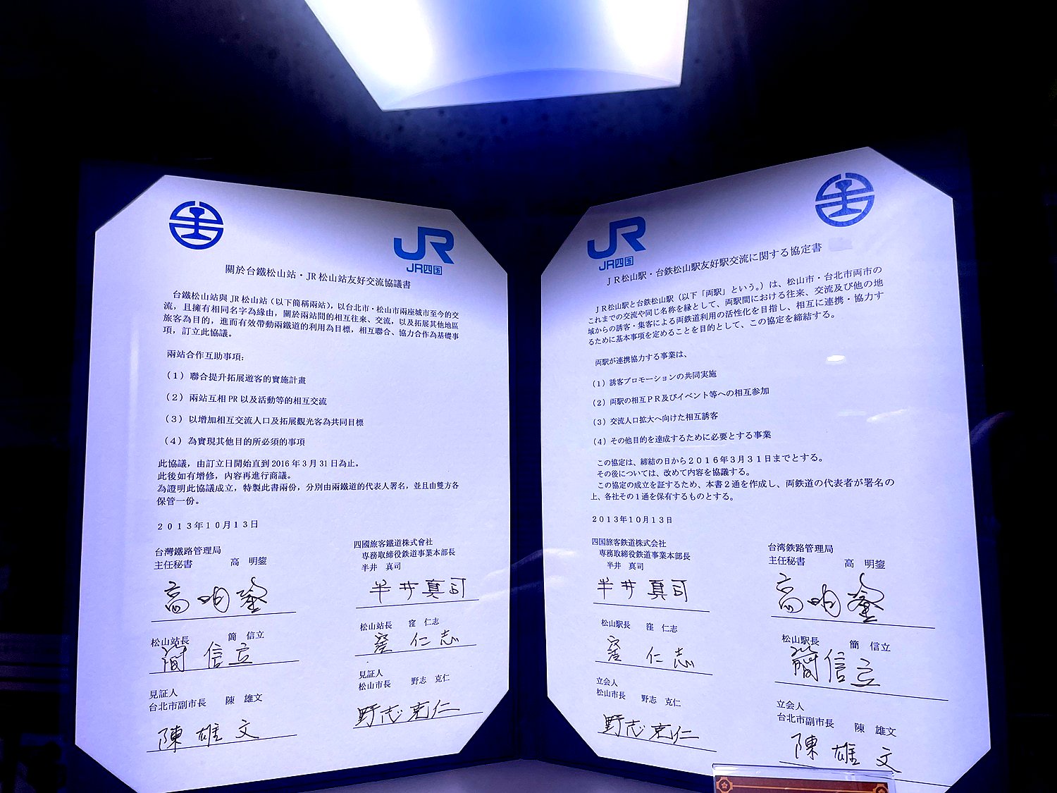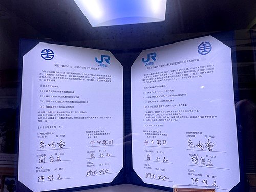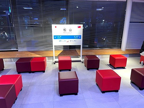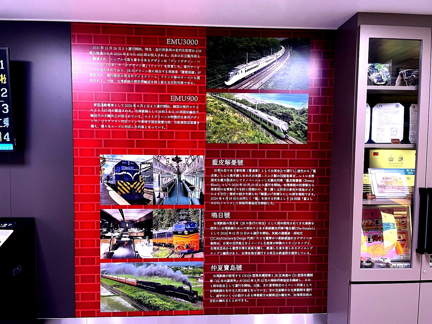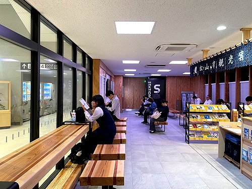 待合室には松山駅と松山駅(台湾)の姉妹駅常設展示がある。